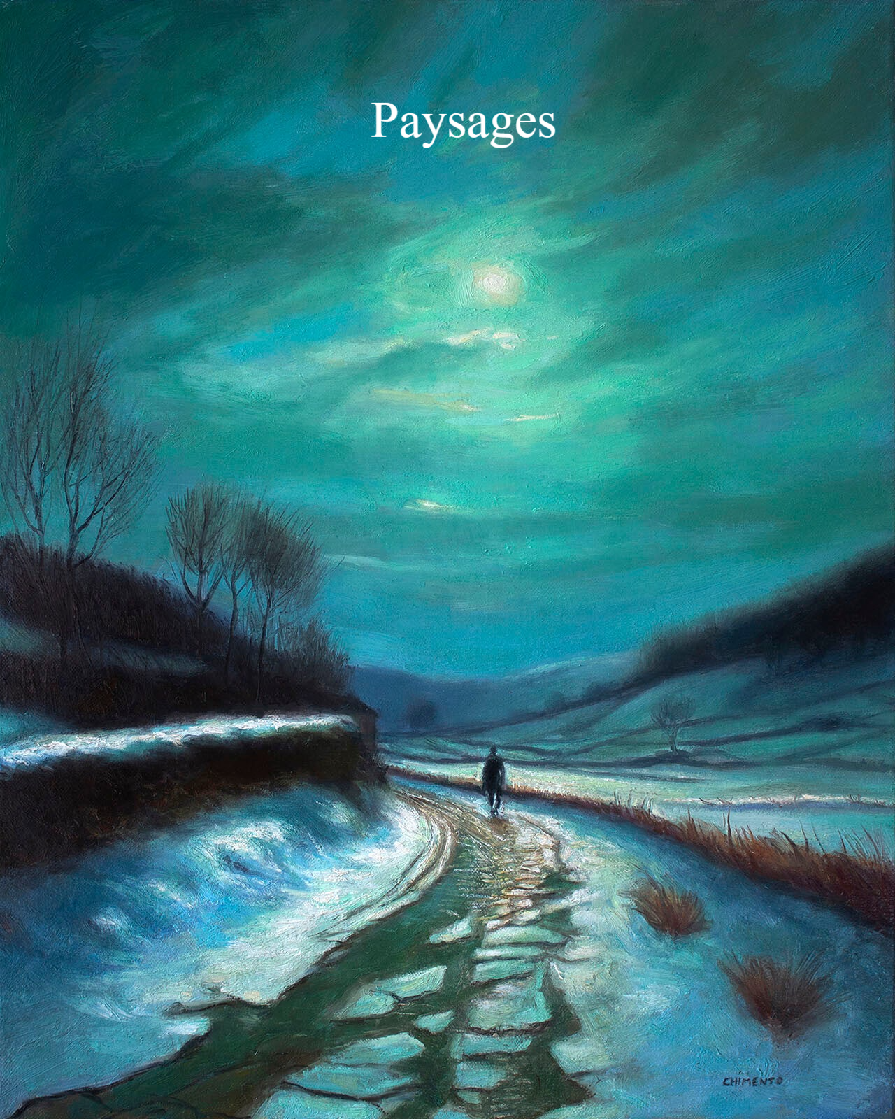 Les peintures originales de Laurent Chimento sont des pièces uniques, réalisées à l’huile selon une technique qui mêle transparences, matière et jeux subtils de lumière.