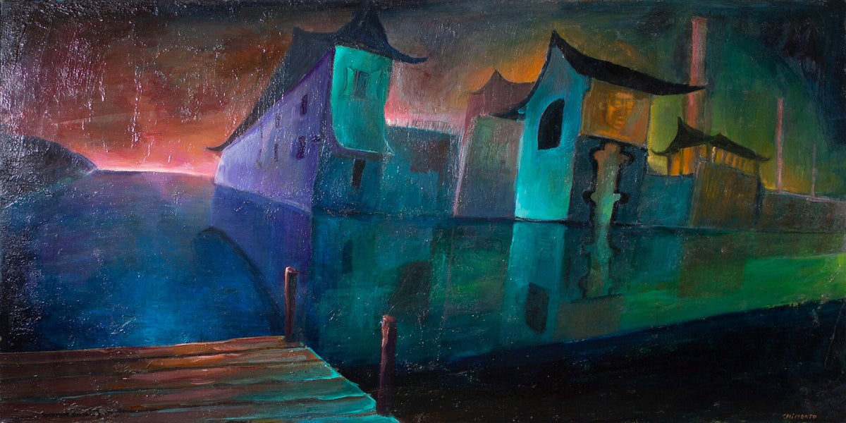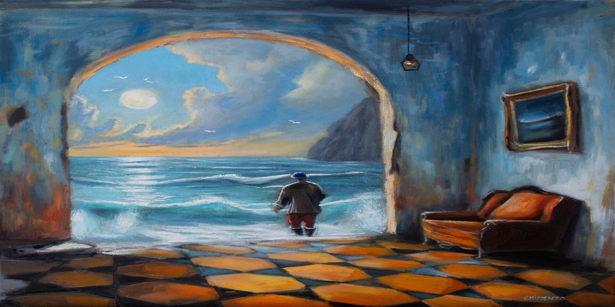 Dans sa série onirique, notamment avec le tableau "Chimère de Chine", Laurent Chimento exprime sa fascination pour la mer dans son rapport fusionnel avec le ciel. Il explore les propriétés réflexives de l'eau à travers un prisme d'onirisme chromatique, capturant des instants de beauté et de mystère.