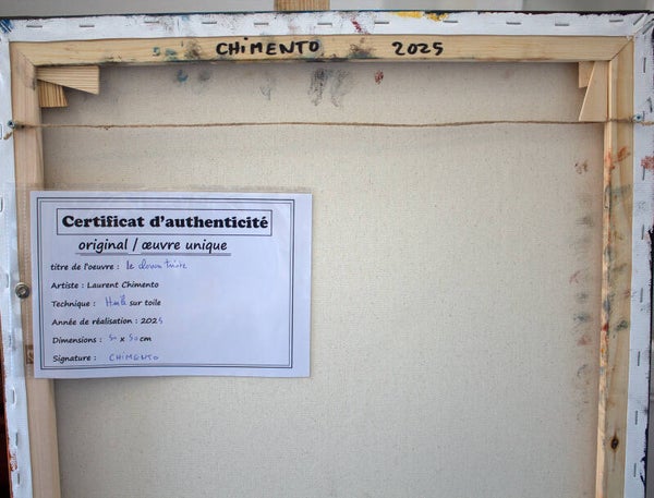 - signée et contre signée Chimento( c'est à dire signée au dos de la toile)