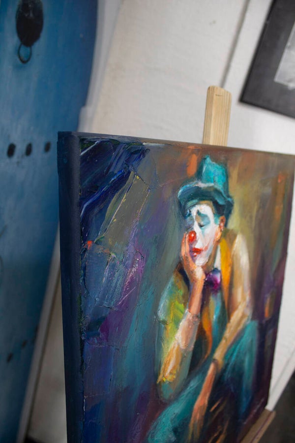 - / Clown assis /50 x 50 x 2 cm