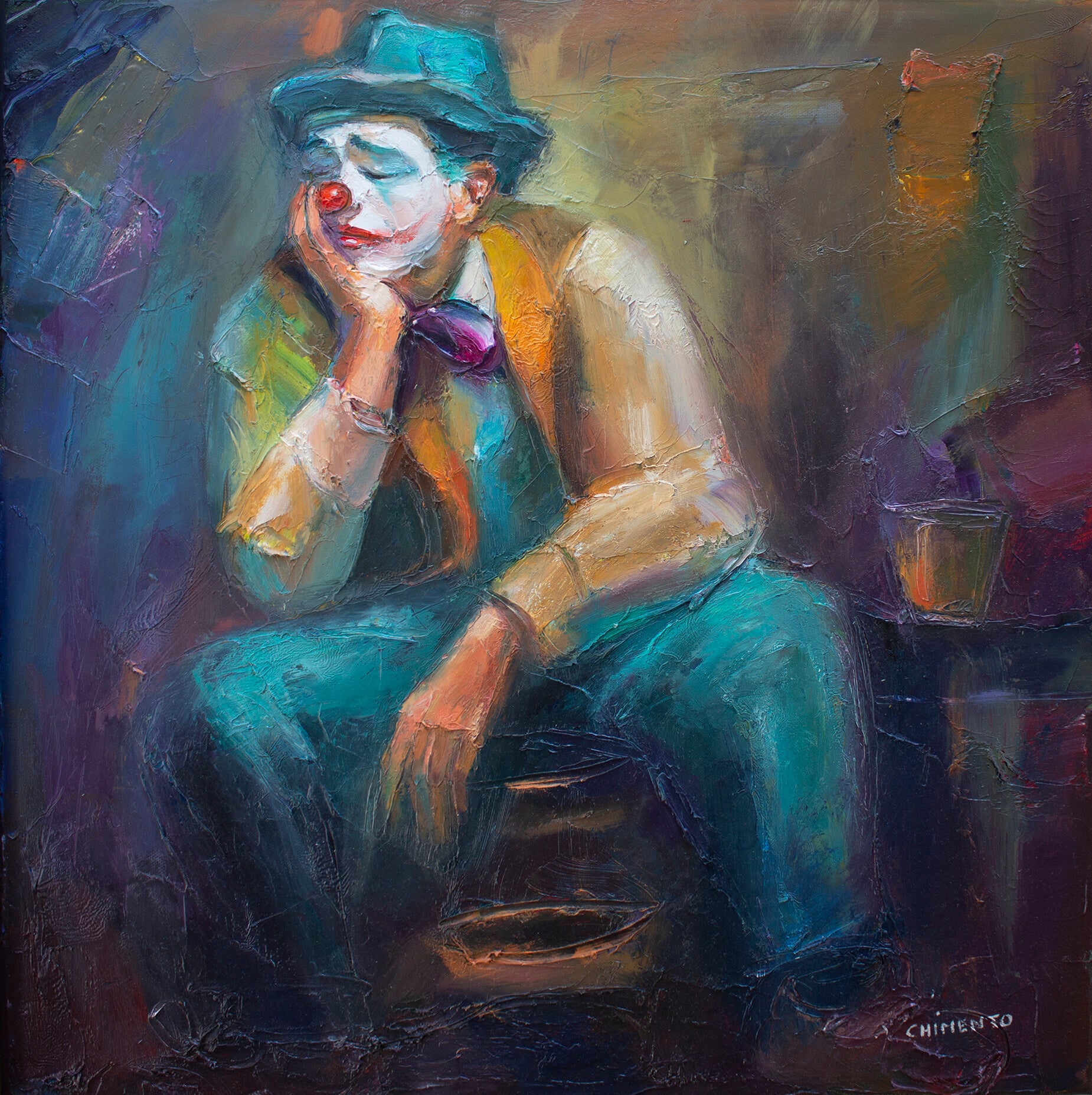 - / Le clown mélancolique / 50 x 50 x 2 cm
