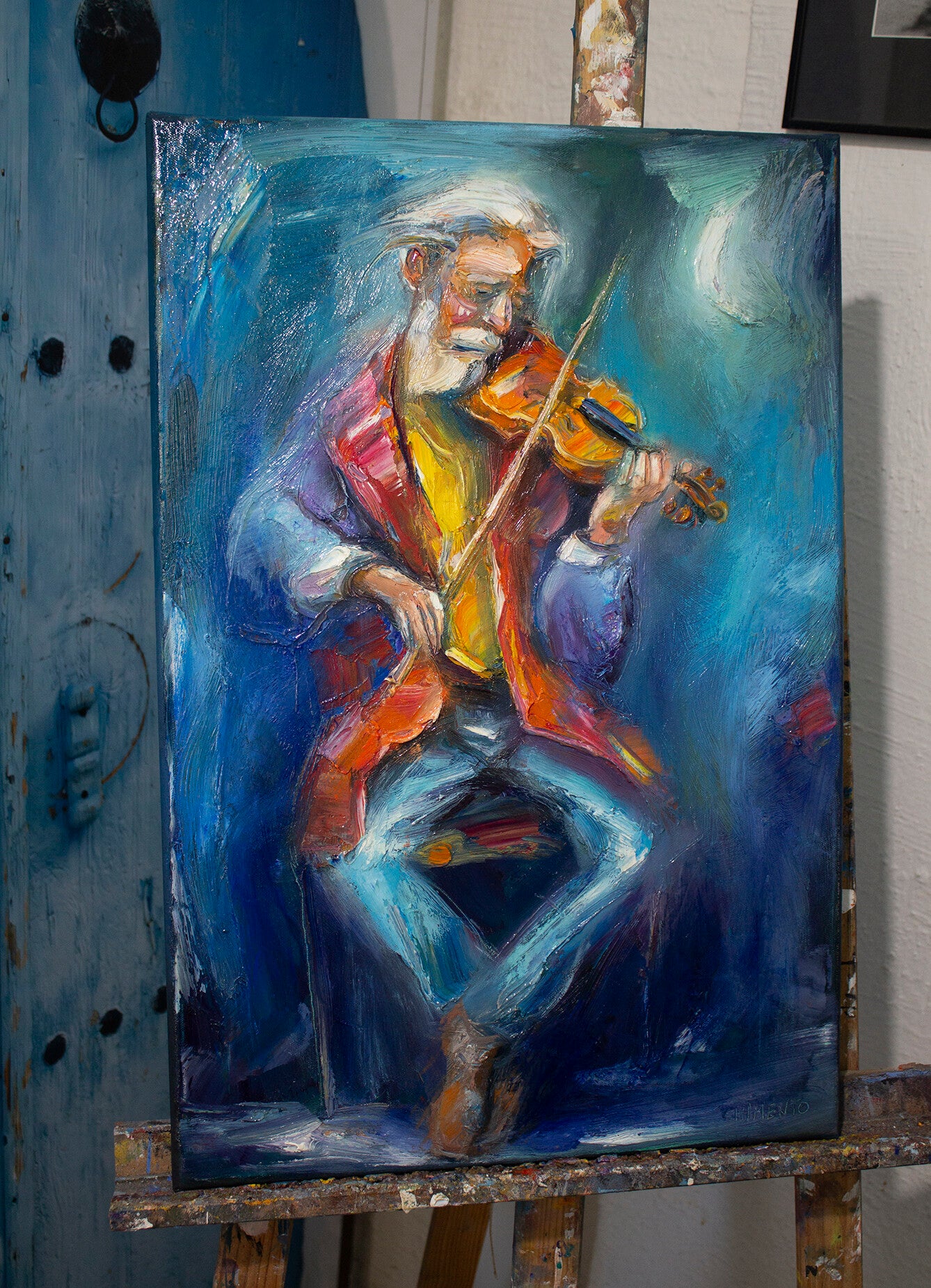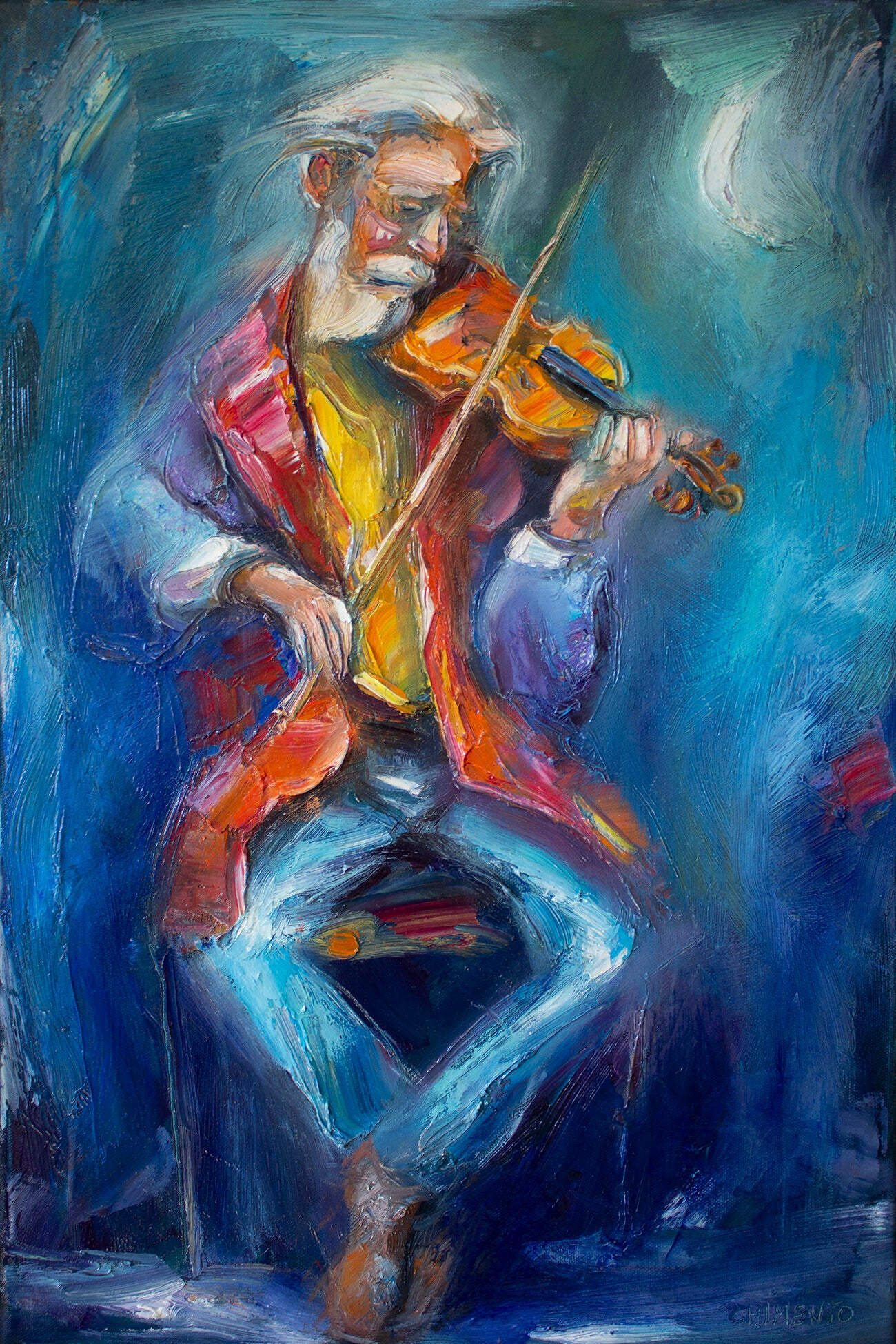 - Un poète au violon/ 40 x 60 x 2 cm