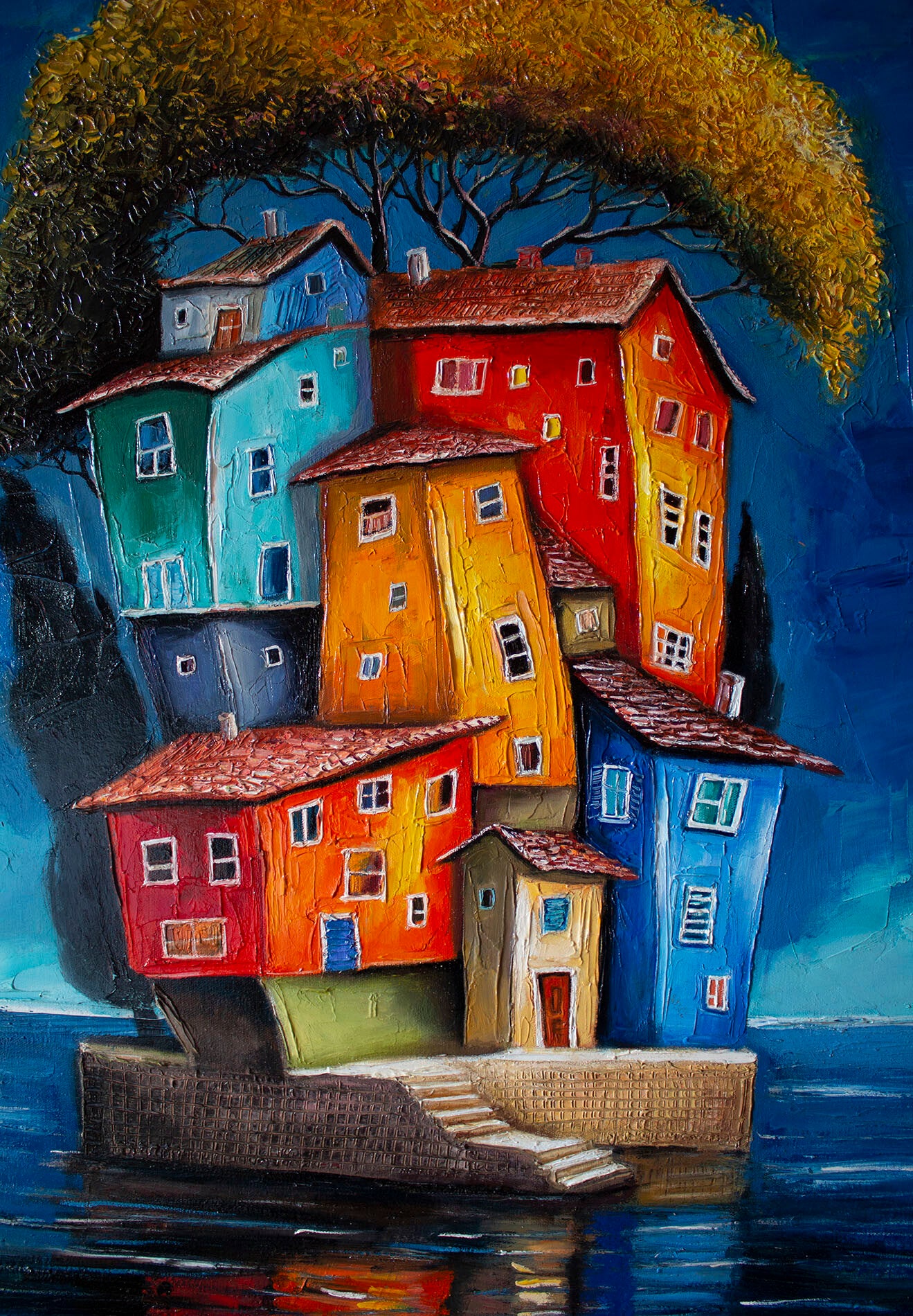 Cette richesse de texture et cette profondeur picturale confèrent à l’œuvre une valeur artistique et sensorielle incomparable, la distinguant nettement des simples images imprimées ou des productions numériques standardisées qui saturent aujourd’hui le marché.
