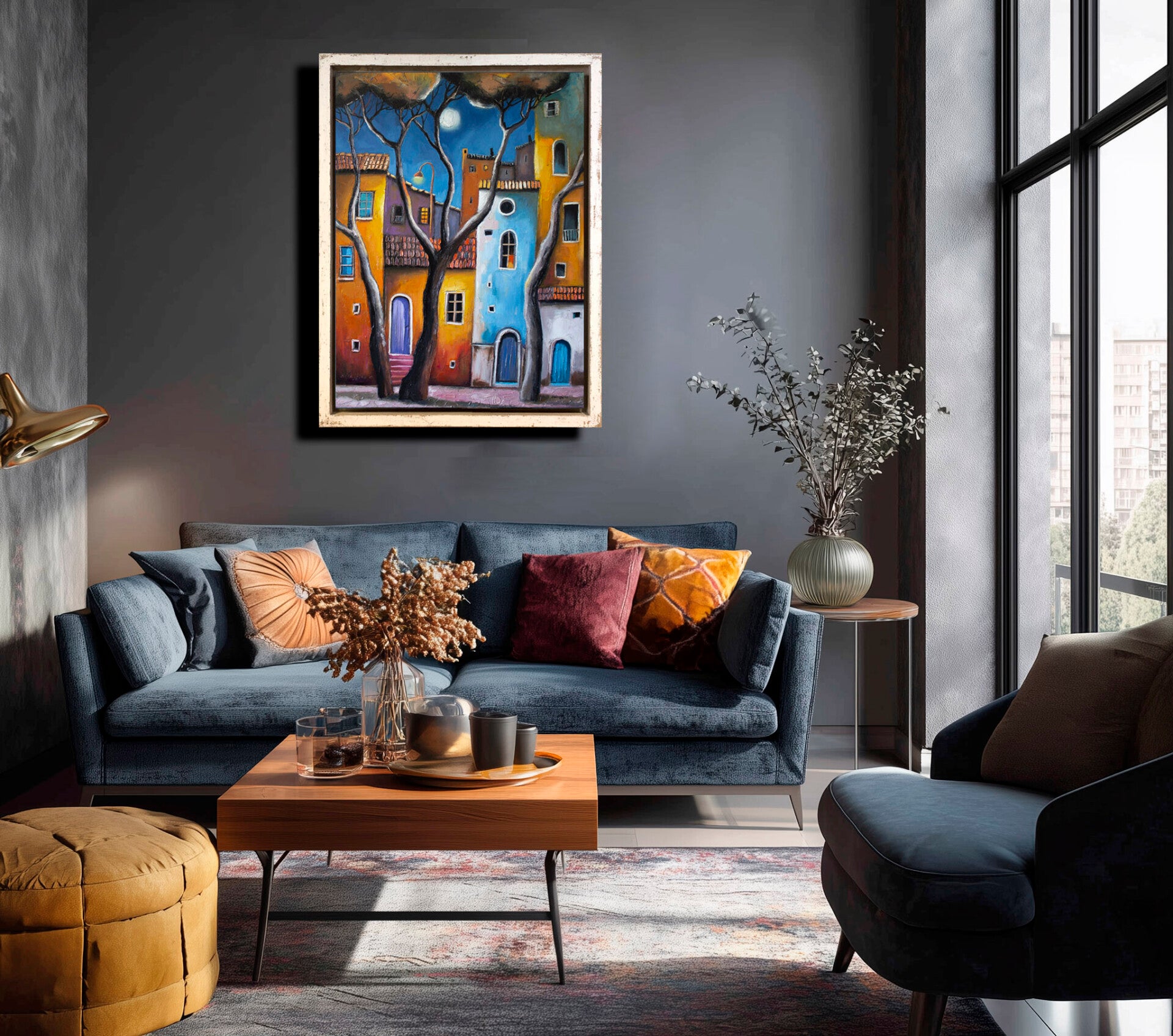 *La matière est volontairement généreuse et travaillée en relief, offrant une présence physique et une vibration de surface que seule la peinture authentique peut produire.